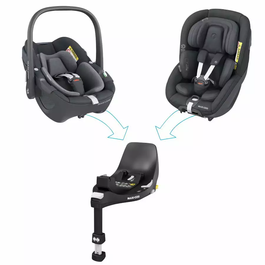 The Maxi-Cosi Pebble 360 can be used as a rotative baby car seat in combination with the FamilyFix 360 base (sold separately). Our FamilyFix 360 base is equipped with ISOFIX connectors and a support leg to provide the safest, easiest and quickest way of installing your car seat.