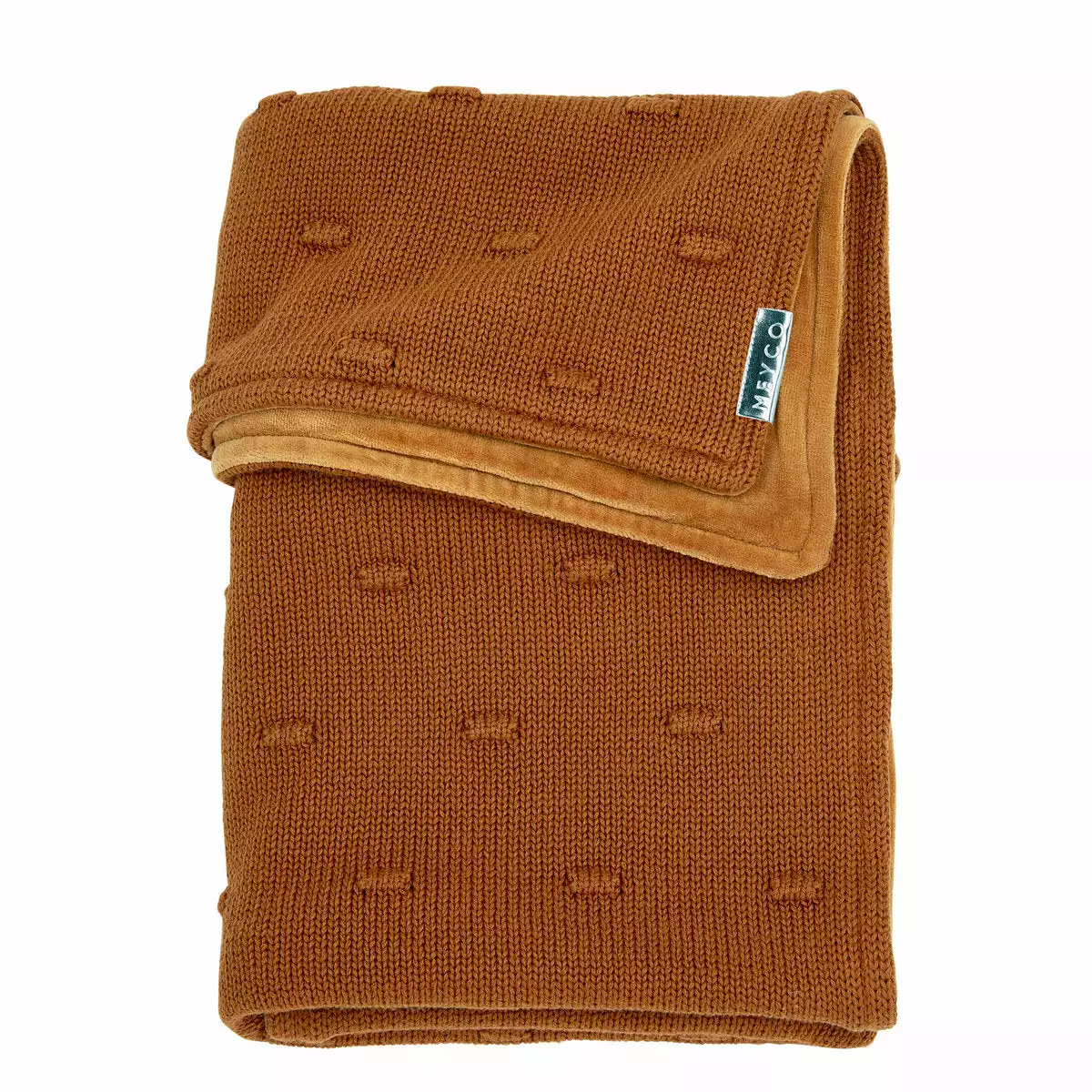 The Meyco knots baby blanket with velvet is a knitted baby blanket and wonderfully soft and comfortable. The blanket consists of two layers. The knitted front of 100% cotton has subtle 3D studs and gives a contemporary, but also luxurious look. The back is made of 80% cotton and 20% polyester velvet. Thanks to the double layer, the blanket keeps your child well at temperature in the spring / autumn and winter.