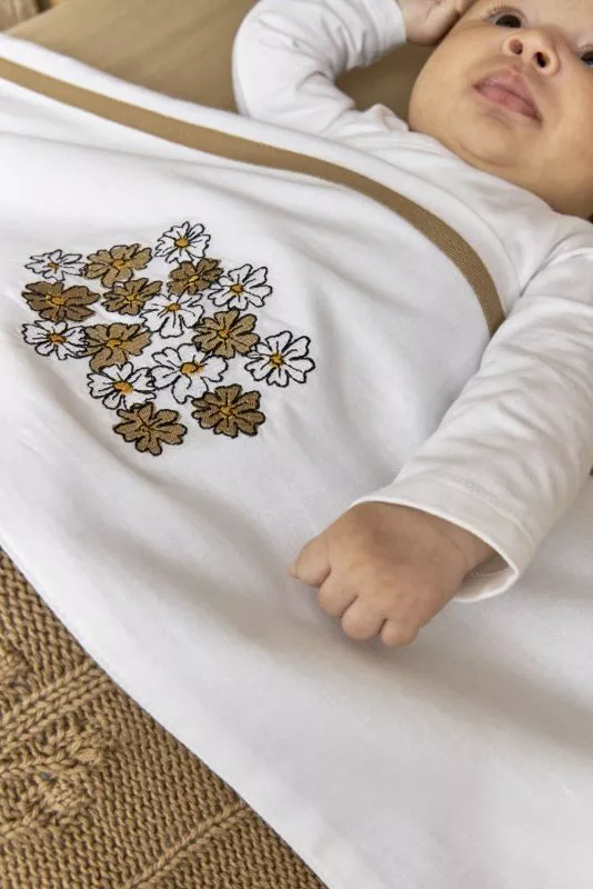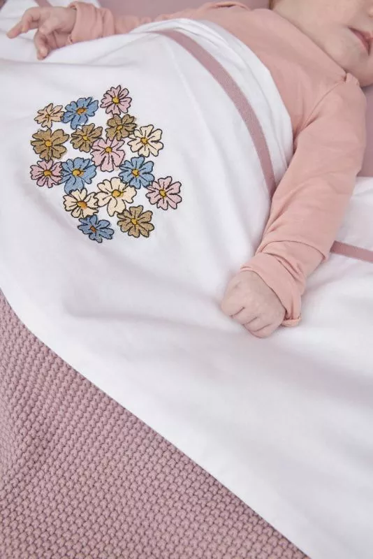 A wonderfully soft sheet of 100% cotton. Due to the use of 100% cotton, the sheet is breathable and safe, but above all comfortable to sleep under. The white sheet has a lilac trim and embroidered dragonflies.