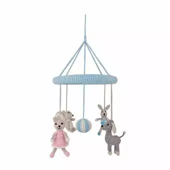 Crochet mobile for decoration of child’s room, handmade with great care to detail under Fair Trade conditions.