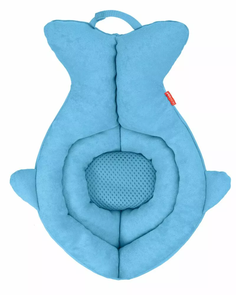 Perfectly sized to cradle newborns and infants, our plush and supportive sink bather is a must-have for your baby’s first baths. With a soft terry surface and a padded whale tail to protect baby’s head, the cushioned design fits in bathroom and kitchen sinks to cradle infants for comfy and convenient bathing. The mesh bottom drains water quickly and the hook-and-loop strap makes it easy to hang dry.