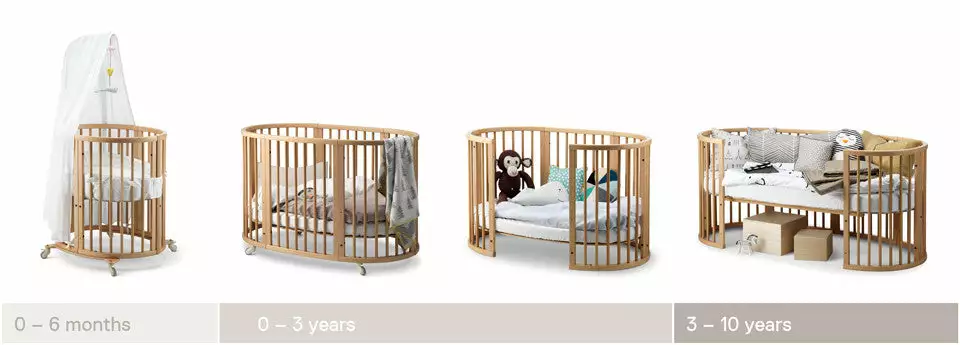 Stokke® Sleepi Set 0-10yrs is the perfect first bed for your baby. Its distinctive oval shape provides your baby with a sense of security by creating a cozy nest-like environment. With adjustable height positions as well as the ability to grow with your child, Stokke® Sleepi expands to accommodate the changing needs – and sizes – of the growing child while maintaining a comforting familiarity. The bed creates a small footprint in your nursery while the lockable wheels make it easy to move from room to room. At only 67 cm/26 inches wide, it is amazingly efficient in even the smallest of spaces.