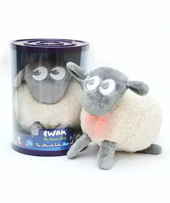ewan the dream sheep is a very soft and cuddly sheep with light and sound features that calms babies and toddlers, and lulls them to sleep. He has actual womb and heartbeat recordings and these are combined with either vacuum cleaner, rain or harp sounds to provide a choice of four different calming tracks which are cleverly activated by ewans legs.
