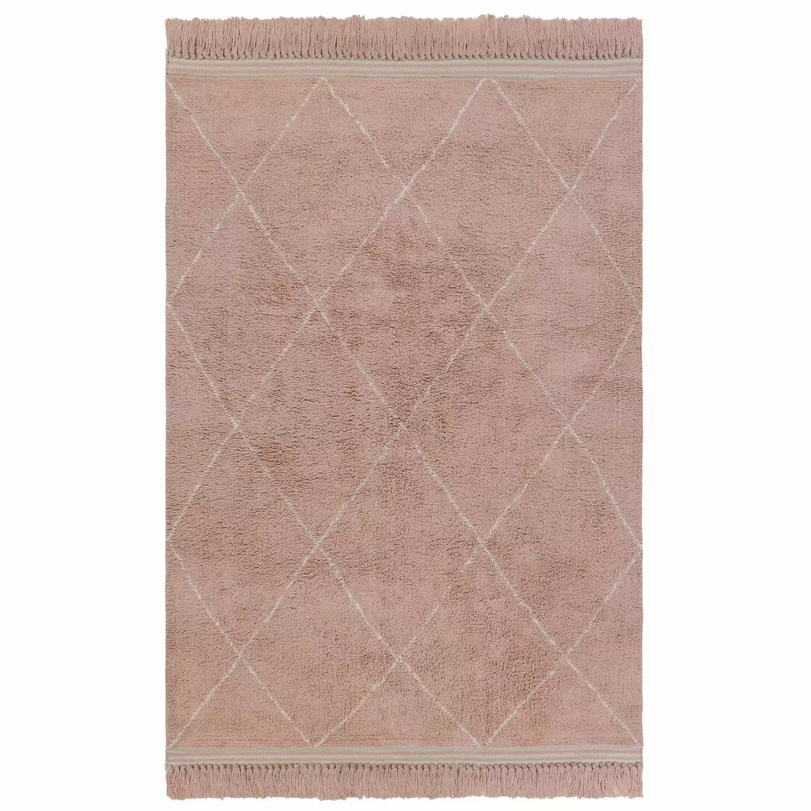 The Tapis Petit Milou Pink Rug is a joyful addition for any room in your home, with it’s rustic pink background, trendy diamond white print finished with lovely cream piping and cheerful tassels on the edge it really will add a touch of style and elegance.