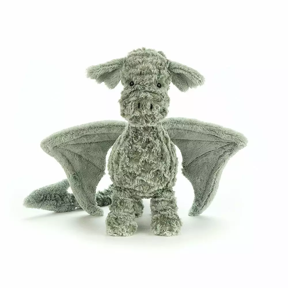 Drake Dragon may look scruffly, but he’s soft, not scaly, and loves to make friends! Minty and mossy, this baby dragon has big, big wings and a long, long tail. Bob him up and down in the air to make him flap, all ready to zoom! (Then give that squidgy snout a tickle – he loves that!)