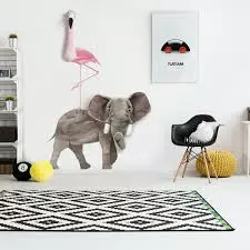 This friendly elephant with it’s pair of tusks, great ears and a long curling trunk will add great decorative impact to a child’s room. It has a soft, plush coat and a comforting expression. The head is light, and easy to hang with the loop attached to the back.